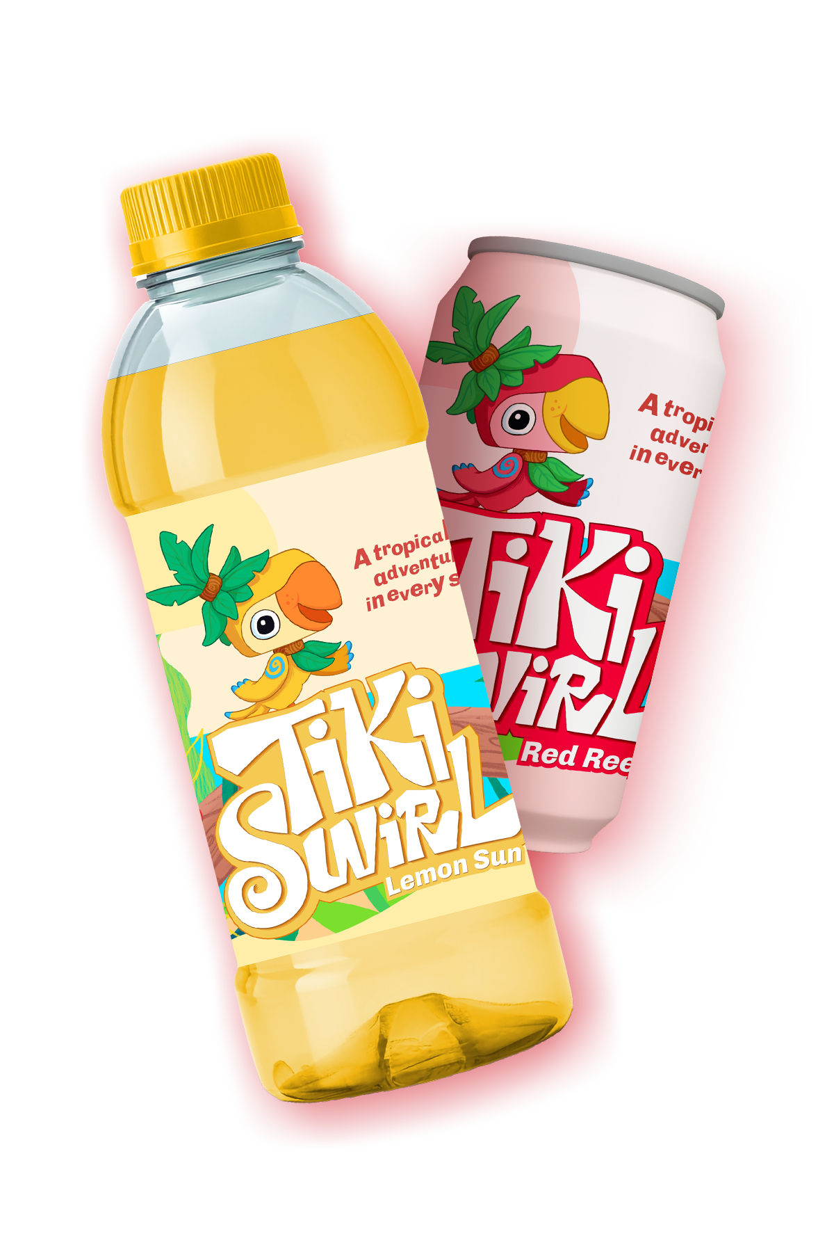 Tiki Swirl invites you to explore a vibrant world of imagination with three delightful flavors: Red Reef, Lemon Sun, and Rainforest Blast.